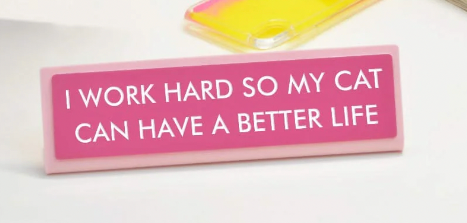 Maybe our favourite find yet, the ‘I work hard so my cat can have a better life’ desk sign is perfection. Grab it for the corporate girls in your life, so they have a little reminder on their desk every day.